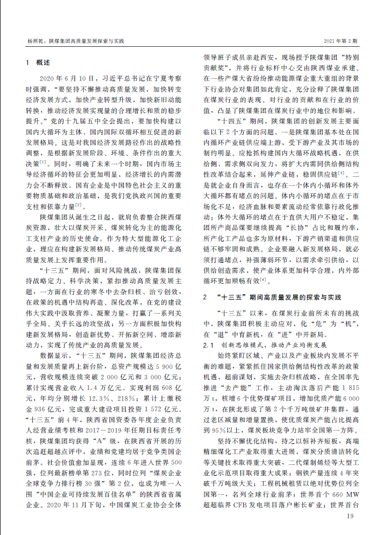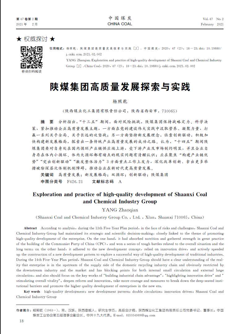 《中國煤炭》(楊照乾署名文章):陜煤集團(tuán)高質(zhì)量發(fā)展探索與實踐
