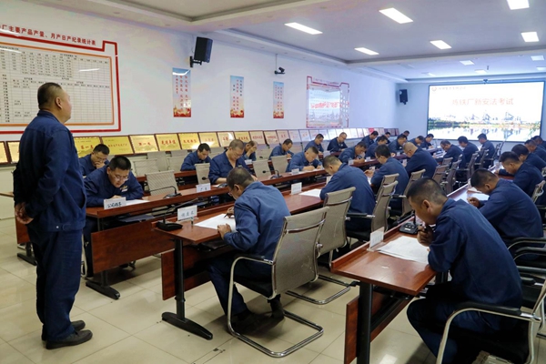 828日,陜鋼集團龍鋼公司煉鐵廠組織全員進行新《安全生產法》知識考試。 聶旭 攝
