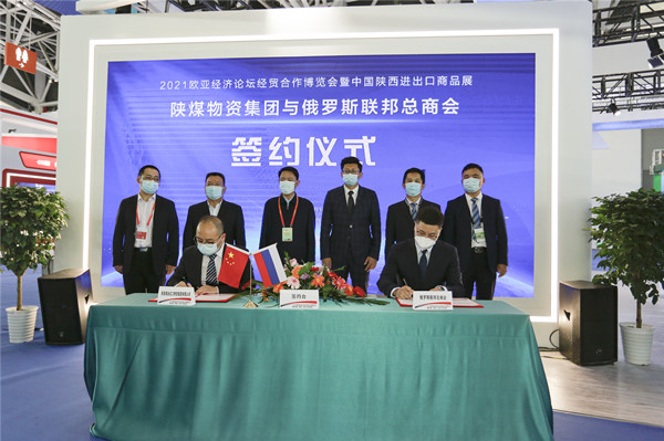 下午3點,陜煤集團成為當天商品展中最繁忙的“熱點”參展商,一舉完成國內(nèi)國外兩場簽約。物資集團現(xiàn)場分別與西寧特殊鋼股份有限公司簽署了2022年度合作協(xié)議,銷售其生產(chǎn)的不少于100000噸優(yōu)特鋼產(chǎn)品;與俄羅斯聯(lián)邦總商會簽署中俄經(jīng)貿(mào)領域合作協(xié)議,合作領域包括大宗商品采購、物流倉儲業(yè)務、貨代保稅業(yè)務、供應鏈增值服務等業(yè)務。